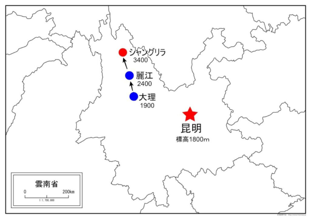 シャングリラと昆明の間には同じく有名な観光地、麗江と大理があるのでついでに観光してくるのが鉄板だと思います。