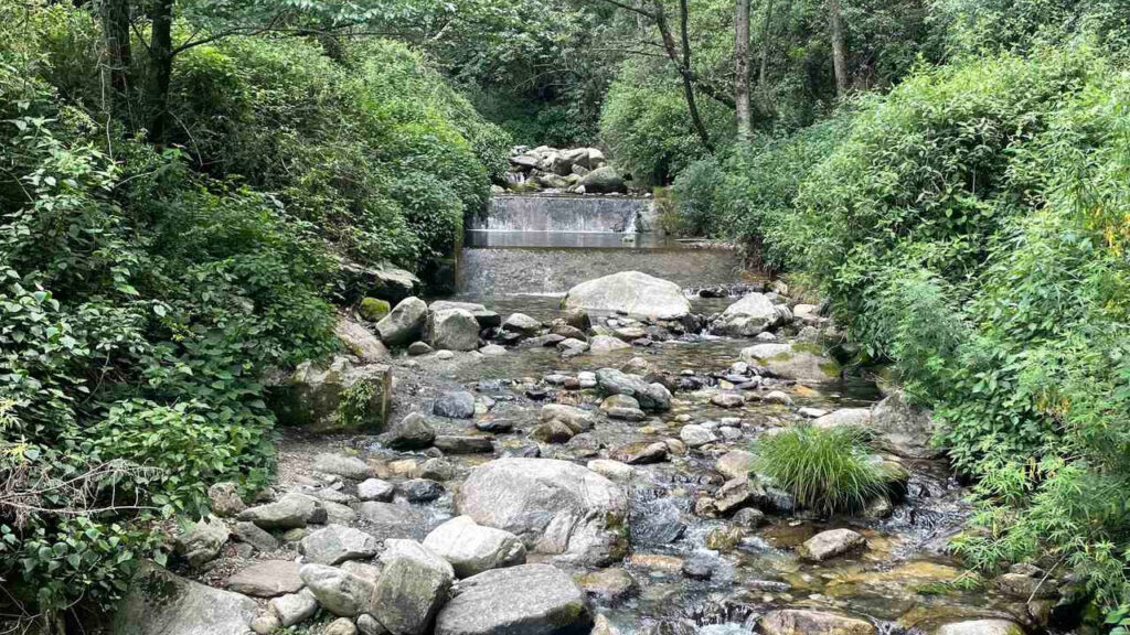 感通索道を降りて歩を進めると、蒼山で最も美しいと言われる渓谷「清碧溪」に到着。エメラルドグリーンの水が滝壺に落ちる様は清涼な世界。森林浴を兼ねた軽いトレッキングとして人気です。